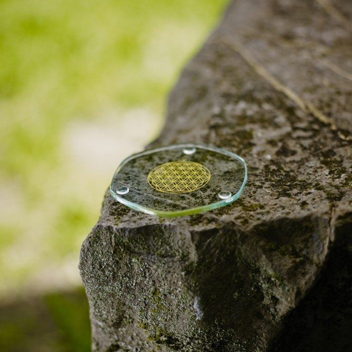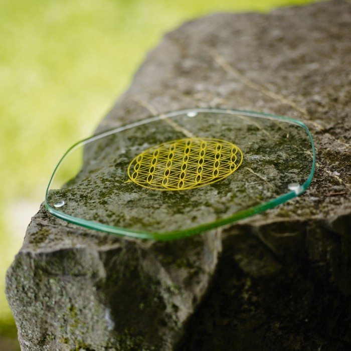 Der Nature´s Design Glasuntersetzer: zur biologischen Aufwertung von Getränken, Lebensmitteln und Gegenständen. Die handgeschliffene Form des Energy Plates ist auf die Grundtöne des Erd- und Venus- Umlaufes abgestimmt. Die sanft gerundete Kristallform des EnergyPlates verstärkt die Wirkungskraft der Blume des Lebens. Der Nature´s Design Energy Plate Glas-Untersetzer hat auf der Unterseite die Blume des Lebens in 24 Karat Gold im Boden eingebrannt.