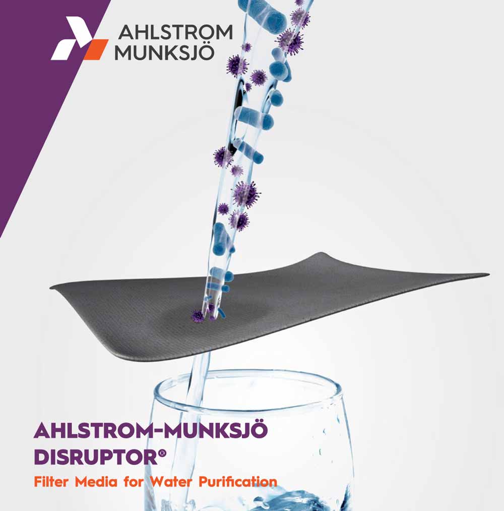 Das Ahlstrom-Munksjö Disruptor® Filtervlies, ein neues revolutionäres Filtermaterial, welches neben Bakterien, Keimen & Viren sehr viele andere Schadstoffe zurückhält, erobert die Welt der Wasserfiltersysteme