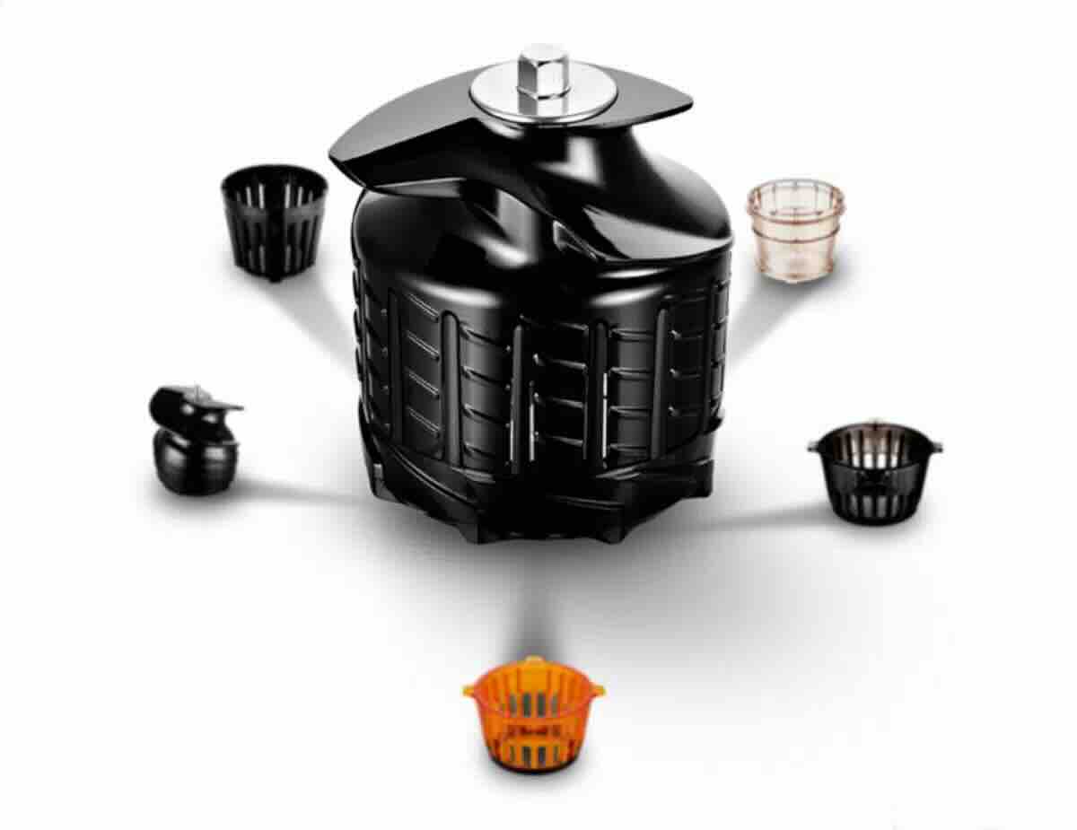 Der H70-ST basiert auf der bewährten Presstechnik mit Edelstahlsieb, Pressschnecke & Abstreifer. Dieses bewährte Konzept wurde von Hurom seit Jahrzehnten immer weiter optimiert. Die Saftausbeute ist sehr gut und der produzierte Saft ist relativ gering. Es gibt ein feines Sieb für die normale Saftproduktion & Pflanzenmilch, ein grobes Sieb für dicke Säfte & Smoothies und ein BlankSieb bzw. Eiscremeeinsatz zum Herstellen von Pürees & Sorbets. Damit können Unterschiedliche Dinge wie klare Säfte & vegane Milch, Smoothies & Eiscreme/Sorbets/Pürees in guter Qualität produziert werden. Für jeden Einsatz gibt es den passenden Siebeinsatz.