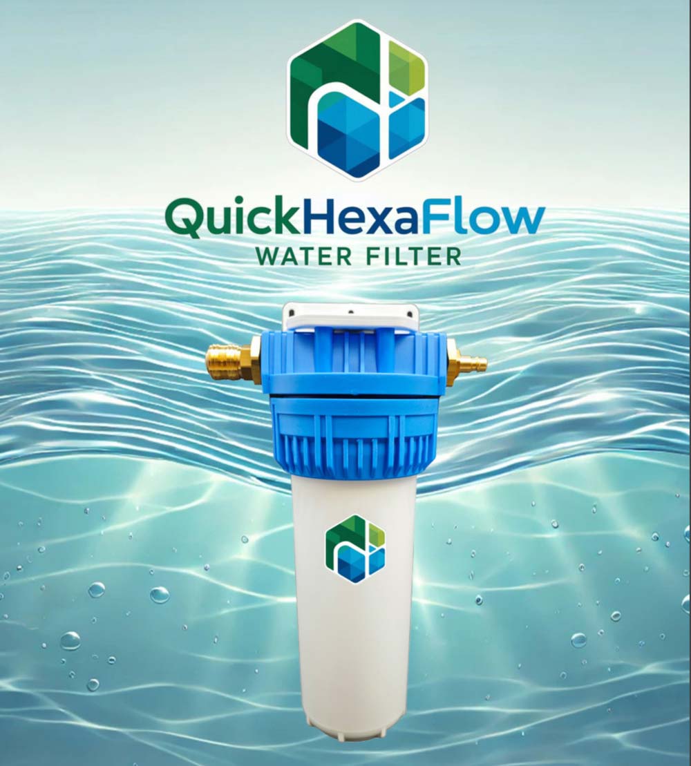 QuickHexaFlow bietet ein einfaches Wasserfiltersystem, das in 5 bis 10 Minuten installiert werden kann, ohne Veränderungen am Wasserhahn vorzunehmen. Es ermöglicht die Erzeugung von gefiltertem, hexagonalem Wasser und verwendet hochwertige Filterpatronen, die effektiv Hormone, Medikamente, Schwermetalle, Aluminium, Pestizide, Chlor, Chlorverbindungen, PFAS, Mikroplastik, Viren, Bakterien und sonstige Schadstoffe zurückhalten, während Mineralien im Wasser bleiben.