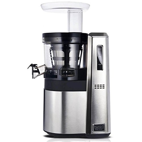 Vertikale Einzelschnecken Entsafter / Saftpressen sind im Grunde die absoluten Allround Saftpressen für fast alle Bereiche. Diese schonenden Slow Juicer haben den größten Anwendungsradius. Egal ob hartes oder weiches Obst, Gemüse oder Beeren, für die modernen vertikalen Entsafter kein Problem. Kleine Schwächen gibt es bei langfaserigem Pressgut wie Gräser & Staudensellerie, da die Geräte verstopfen können. Bei solchem Pressgut empfehlt es sich, gegen die Fasern kleinzuschneiden. Stangensellerie sollte z.B. in 2-3cm Stücke geschnitten werden. Getreidegräser wie Weizen- & Gerstengras lässt sich mit vertikalen Entsaftern nicht wirklich gut pressen. Grüne Blätter wie Spinat, Feldsalat, Löwenzahn und andere Wildkräuter lassen sich noch halbwegs gut pressen, am besten funktioniert es zusammen mit anderem Pressgut wie Karotten. Bei den vertikalen Slow Juicern gibt es große Unterschiede. Es gibt bereits mehrere Generationen. Während die günstigen Kopien aus China noch immer die Technik der 1. Generation verbauen, haben die koreanischen Top-Hersteller wie Hurom bereits die 3.Generation auf dem Markt. Geräte der 1. Generation haben noch sehr viele Rückstände & Fruchtfleisch im Saft. Der Apfelsaft ist oft eher ein Apfelmus und wenn man Karottensaft presst, findet man relativ viele "Späne" im Saft wieder. Dies wurde bereits bei der 2. & 3.Generation der vertikalen Slow Juicer sehr stark verbessert. Der Saft ist sehr homogen und weist nur noch sehr wenige Rückstände auf. Sogar Sojamilch lässt sich mit der 2. & 3. Generation der vertikalen Schneckenentsafter sehr gut herstellen. Ein Nachfiltern ist wie bei der 1. Generation kaum mehr notwendig. Wem ein Nachfiltern nichts ausmacht oder wer wirklich absolut rückstandsfreie Säfte möchte, der kommt auch mit der 2. & 3. Generation nicht um ein Nachfiltern herum. Am schnellsten & effektivsten geht dies mit einem Nussmilchbeutel. Dieser wird einfach in eine Karaffe gehängt und der Saft 1 x durchgegossen und dann ausgedrückt. In der Produktbeschreibung finden Sie ein kurzes Video, was dies nochmal zeigt. In unseren Produktbezeichnungen haben wir vertikale Slow Juicer der 2. & 3. Generation gekennzeichnet. Bisher waren die vertikalen Slow Juicer nur in spezialisierten Onlineshops wie unserem erhältlich. Mittlerweile findet man einige Entsafter dieser Art auch in Elektronikmärkten und bei Discountern. Es handelt sich allerdings überwiegend um günstige Kopien der 1. Generation, der oben genannten koreanischen Markenhersteller.