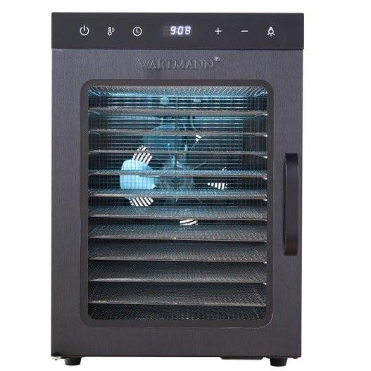 Der Edelstahl Dörrautomat Wartmann WM-2512 ist die leistungsstarke Lösung für alle, die Obst, Gemüse, Kräuter, Pilze, Fruchtleder und Rohkost-Cracker gleichmäßig und schonend trocknen möchten. Der WM-2512 ist baugleich mit dem bewährten Wartmann Edelstahl-Dörrgerät, bietet jedoch 12 Einschübe für noch mehr Kapazität und Effizienz. Innen und außen aus robustem Edelstahl gefertigt, steht dieses Dörrgerät für Hygiene, Geruchsneutralität und Langlebigkeit, besonders vorteilhaft bei langen Dörrzeiten. Ein großer, rückseitig platzierter Lüfter mit Heizelement erzeugt einen horizontalen Luftstrom, der alle Ebenen gleichmäßig durchströmt und so konsistente Ergebnisse ohne häufiges Tauschen der Einschübe ermöglicht.