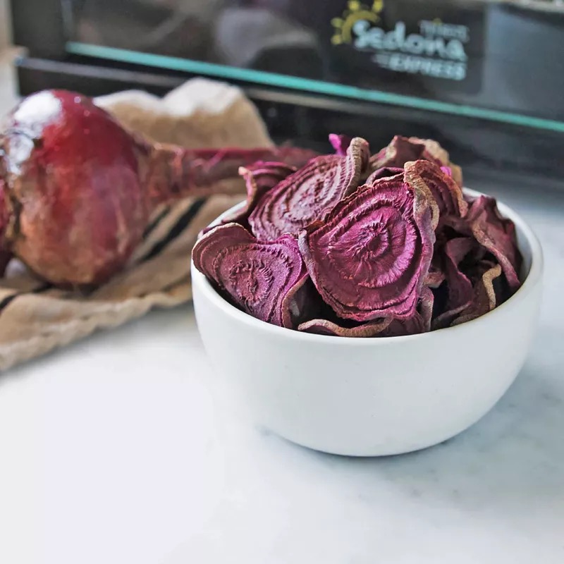 Durch die anfänglich kurze Express-Trockenphase mit hohen Temperaturen und der anschließenden langen Raw-Phase bei sehr geringen Temperaturen, überwindet der Sedona Express mit anfangs hohen Gradzahlen, die im Gerät entstehende Verdunstungskälte und erreicht eine gleichmäßige warme Temperatur im Innenraum und im Dörrgut. Die Rohkost Qualität der Zutaten wird nicht beeinträchtigt und bleibt beim folgenden Trocknen mit geringen Temperaturen stets gewahrt. Mit diesem smarten Vorgehen sparen Sie 1-2 Stunden Trocknungszeit – ohne Nährstoffe zu vernichten.