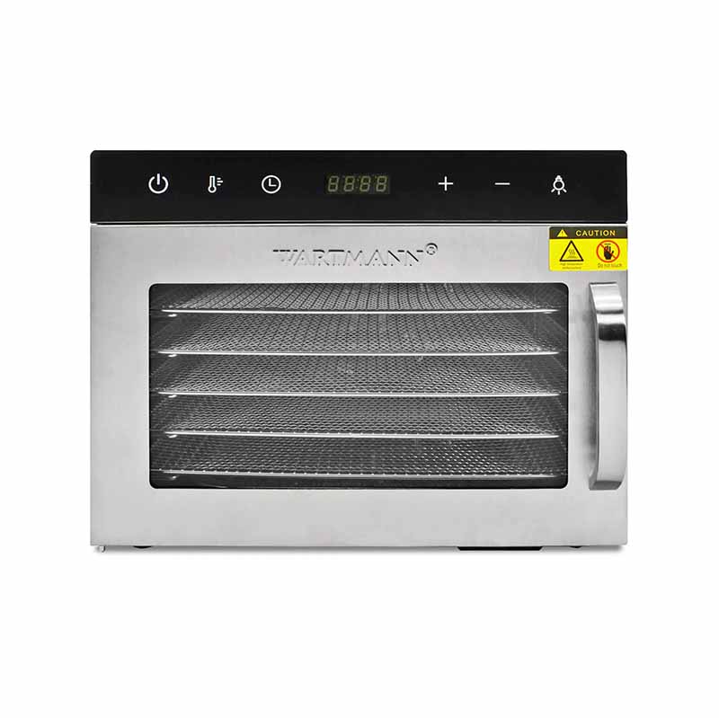Der Wartmann WM-2206 DH verfügt über einen geräuscharmen Lüfter, der einen gleichmäßigen Luftstrom über die 6 Edelstahl-Einschübe bläst. Dies ermöglicht den Trocknungsprozess Ihrer Lieblings-Lebensmittel auf allen Einschüben gleichzeitig.