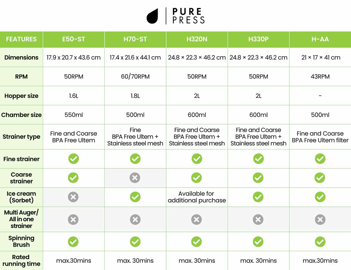 Highlights des Slow Juicer Hurom E50ST PurePress Serie