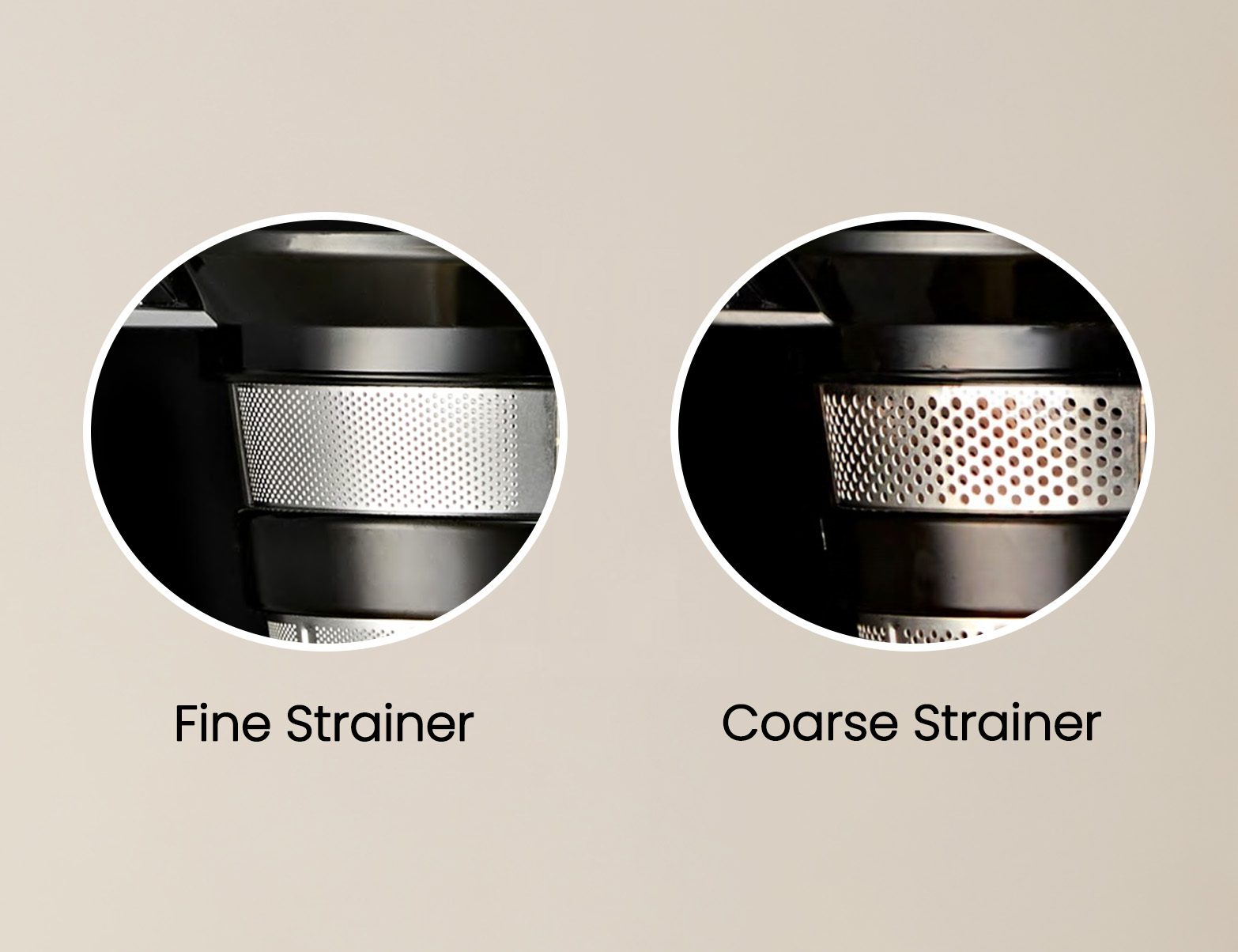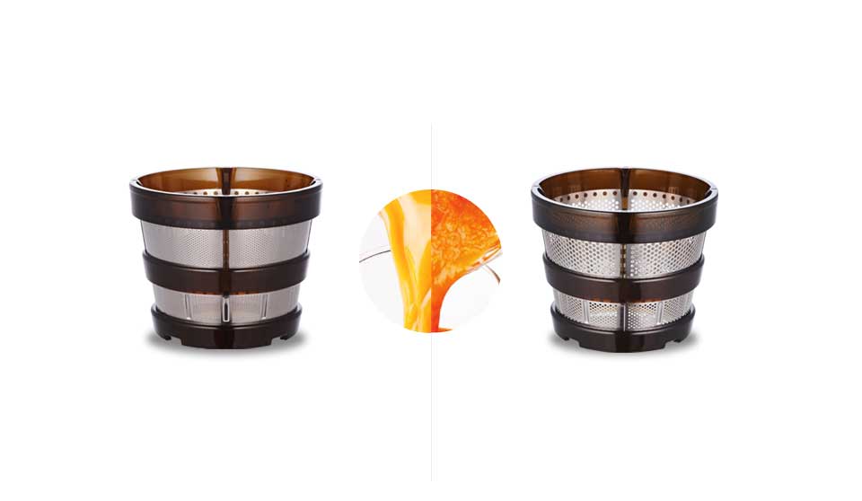 Der Hurom E50ST Slow Juicer liefert zwei verschiedene Siebeinsätze: