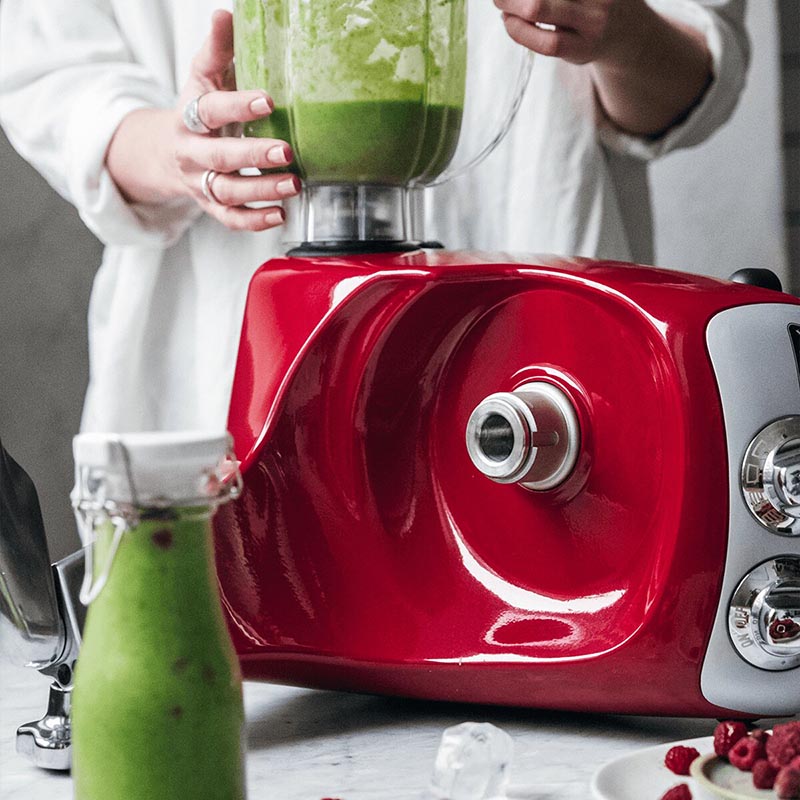 Ein Mixeraufsatz für Ihre Ankarsrum Assistent Küchenmaschine. Der Mixeraufsatz wird an seinem speziellen Anschluss der Küchenmaschine aufgesetzt. Ist das Geschehen, können Sie die volle Drehzahl des Motors benutzen. Ideal für die Zubereitung von Pestos, Saucen, Suppen, Smoothies sowie Nüsse und Crushed Ice.