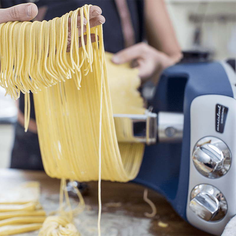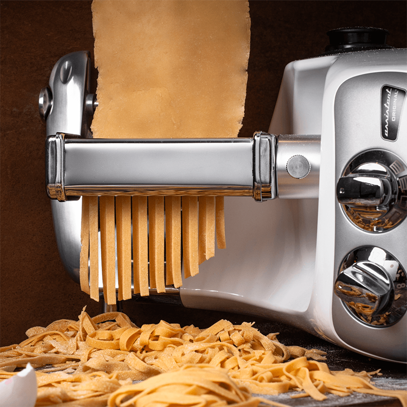 Nudelvorsatz für die Ankarsrum Assistent Küchenmaschine. Diese hochwertigen Pastawalzen werden vom italienischen Premiumhersteller Marcato für Ankarsum hergestellt. Marcato hat inzwischen mehr als 80 Jahre Erfahrung mit der Herstellung von Pasta. Selbstgemachte Nudeln machen bei jedem Essen einen tollen Eindruck. Wählen Sie zwischen 3 verschiedenen Ausführungen - Fettuccine, Lasagne oder Spaghetti aus.