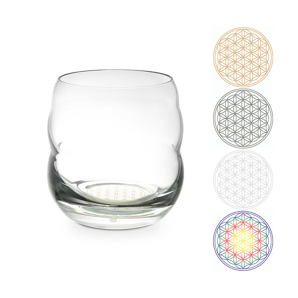 Die 3- gliedrige Bauform des Nature´s Design Trinkbechers Mythos wurde nach dem Gesetz des GOLDENEN SCHNITTES komponiert. Das darin befindliche Wasser (auch geeignet für Säfte) wird in seiner biologischen Wertigkeit gestärkt und im Geschmack blumiger. Mit Lebensblume im Glasboden in verschiedenen Ausführungen wählbar. Der Nature´s Design Trinkbecher MYTHOS ist BEWUSST ROBUST für den intensiven Alltag konzipiert und daher für Kinder bis hin zum gastronomischen Einsatz ideal. Seine Bauform ist so gewählt, dass das Nature´s Design Trinkglas MYTHOS nie umfallen kann --- probieren sie es aus! Auch für heiße Getränke (bis max. 50 Grad) wie Tee und Kaffee hervorragend geeignet - ein in der Tat vielseitig verwendbares Allzweckglas mit geschmacksverbessernder Formgebung.