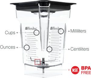 • Blendtec-Fourside-JarDer erste Blendtec Behälter war der Blendtec FourSide Jar. Die Produktionsmenge liegt bei 200-1000ml. Der Fourside Jar eignet sich dadurch perfekt für kleinere & mittlere Mengen. Der Fourside Jar ist perfekt für Smoothies, Milchshakes, Dressings,  Marinaden, Rührteige, Cremes, Soßen, Mehl & Eiscreme. Die empfohlene Einfüllmenge für Flüssigkeiten beträgt 1 Liter, die theoretische Gesamtfüllmenge liegt bei 1,9 Liter, wenn man den Jar bis zum Rand füllt. Dieser Behälter wird vor allem in der Gastronomie verwendet, da dort meist 1-2 Portionen (300ml bis 1000ml) benötigt werden.