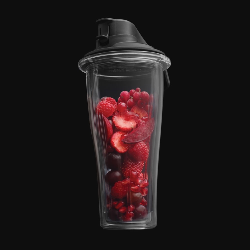 Mit dem 0,6 l Behälter wird es noch einfacher, das Gemixte direkt mitzunehmen, zu servieren oder aufzubewahren. Das oft unpraktische Umfüllen vom großen Behälter in kleinere Einheiten entfällt damit komplett.