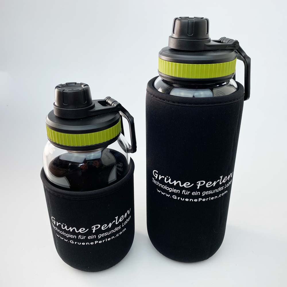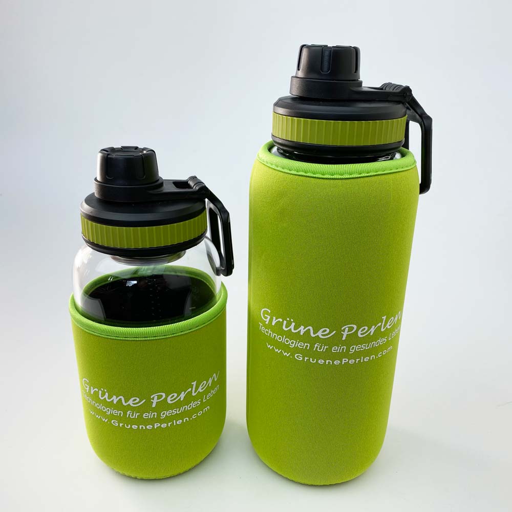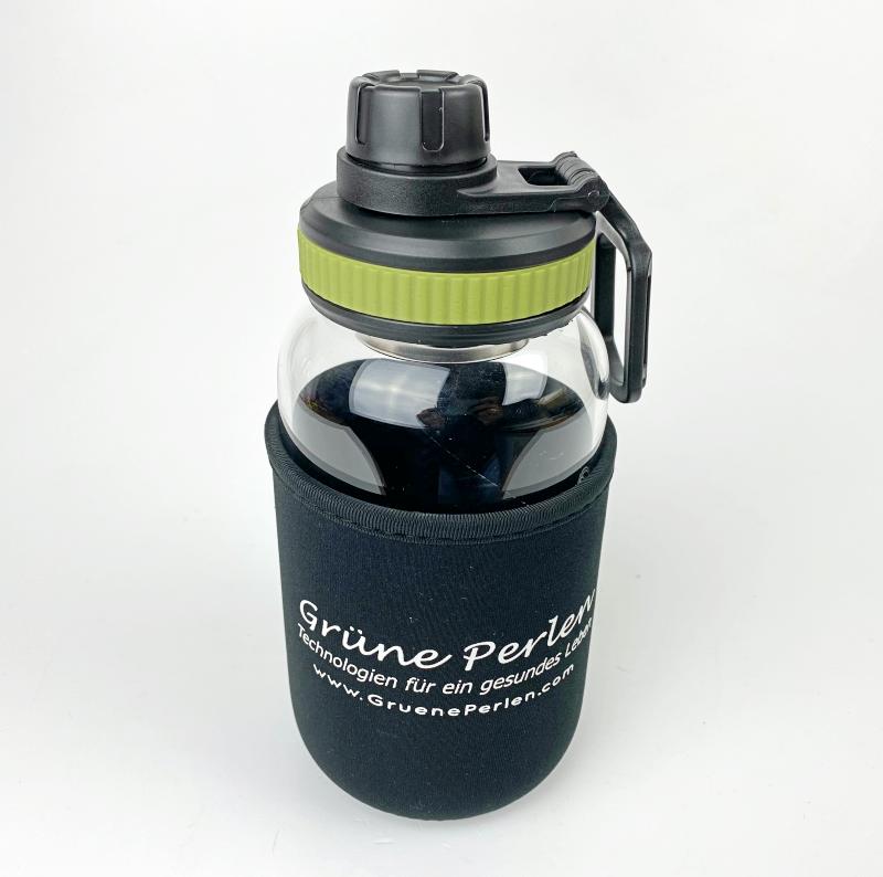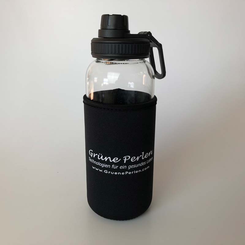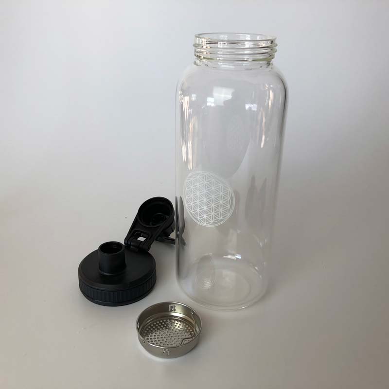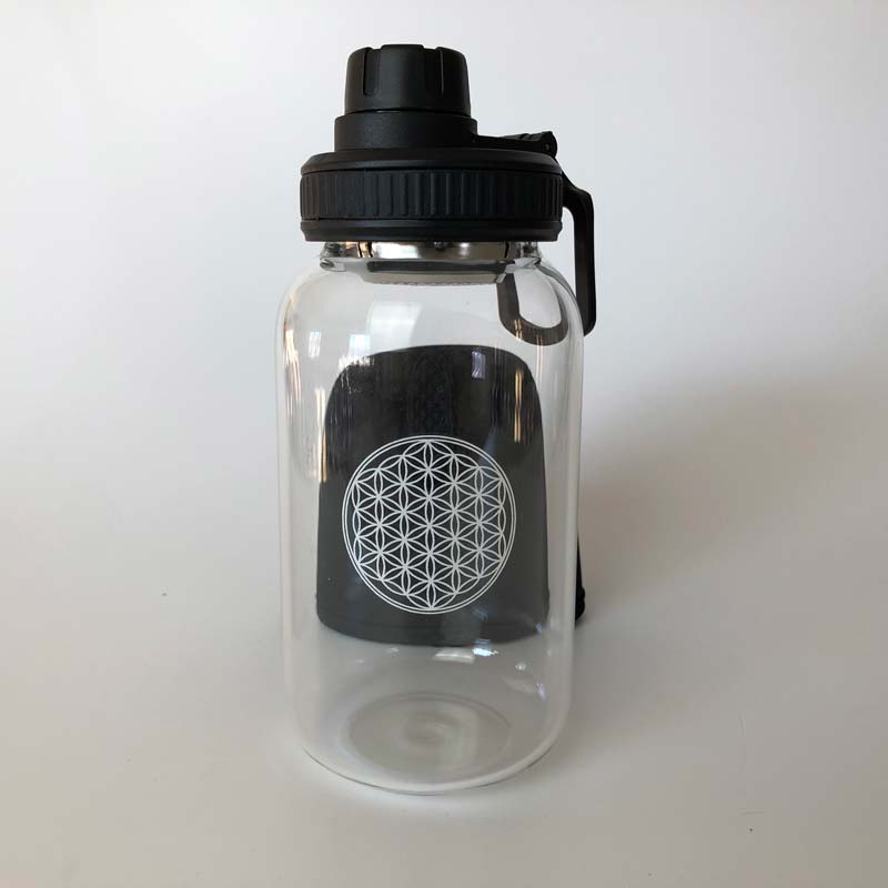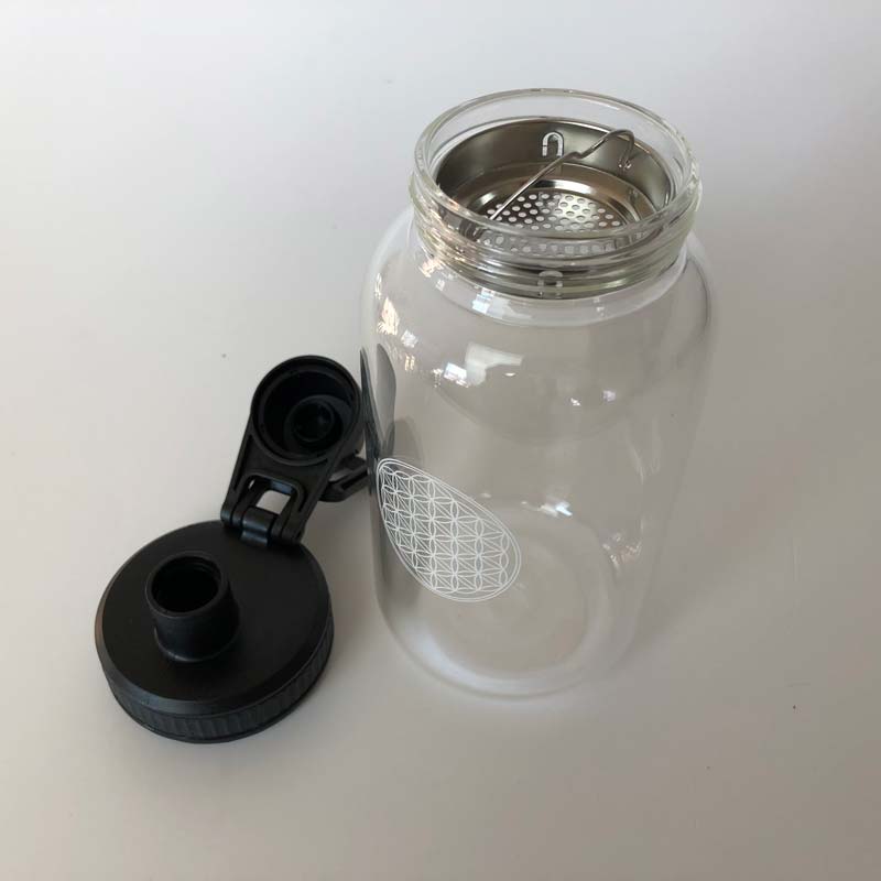 | Lieferumfang: | Borosilikatglasflasche mit Blume des Lebens, Deckel mit Trinkverschluss, Teesieb, Sleeve aus Neopren | *Achtung: bei der Reinigung in der Spülmaschine kann der Aufdruck langfristig verblassen bzw. sich ablösen. |