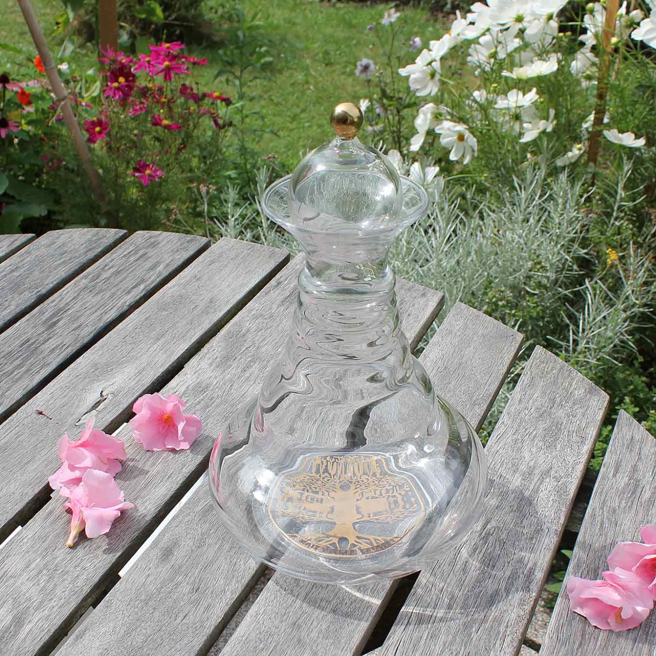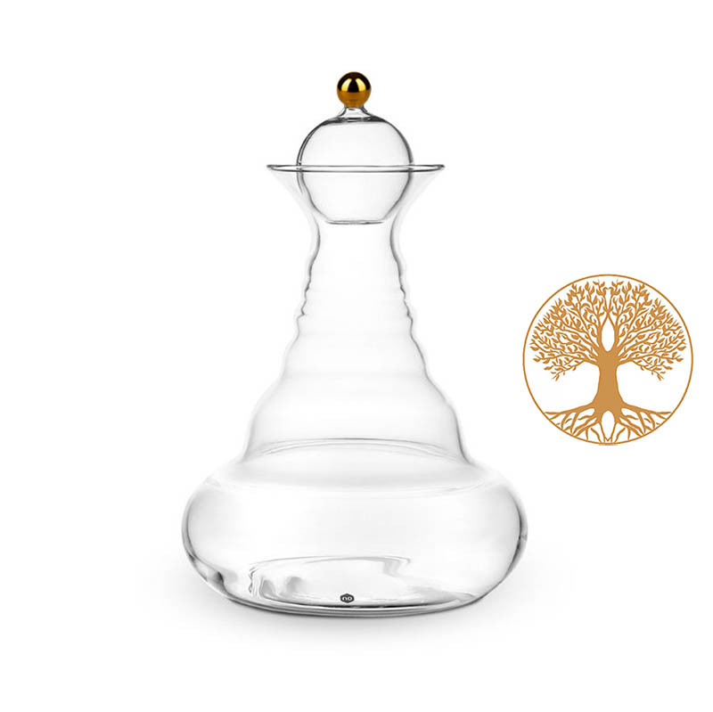 Sonderedition Lebensbaum Karaffe 2018! Aus der beliebten Karaffenserie Alladin, ist die Lebensbaum Karaffe wie gewohnt aus reinem, schwermetallfreiem Glas. Nach alter Handwerkstradition mundgeblasen vereint die Karaffe Lebensbaum die harmonische Formgebung des Golden Schnitts mit den mythologisch-religiösen Bedeutungen von Baumkulten (heilige Bäume) und der Fruchtbarkeitssymbolik.