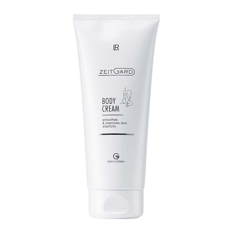 Zeitgard KörpercremeEine festigende Körpercreme mit einem Wirkstoff-Transport-System, welcher einen verkapselten Wirkstoff enthält, der die Haut festigt und Hautrauigkeiten reduziert. Dieser Wirkstoff baut das Kollagengerüst Ihrer Haut wieder auf, spendet zudem Feuchtigkeit, welche sich in der Haut bindet. Vitamin E und Panthenol stärken die Barrierefunktion der Haut und Hyaluronsäure polstert sie sichtbar auf. Hierbei erhält die Haut mehr Spannkraft und Elastizität und fühlt sich glatt und seidig an.