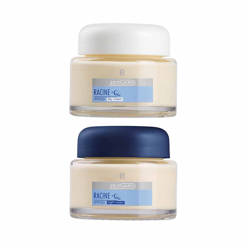 Das Racine Tag- & Nachtset ist eine wirkungsvolle Basispflege und versorgt müde wirkende, abgespannte Haut neuer Energie und mit viel Feuchtigkeit. Für frischen und vitalen Teint! Bevor die ersten Fältchen entstehen, können Sie dem in den Cremes enthaltenen Pflege-Komplex aus Coenzym Q10 und den Algen, Ihren Hautalterungsprozess verlangsamen. Diese Pflegeserie aktiviert die Haut und verleiht mehr Strahlkraft und Frische.