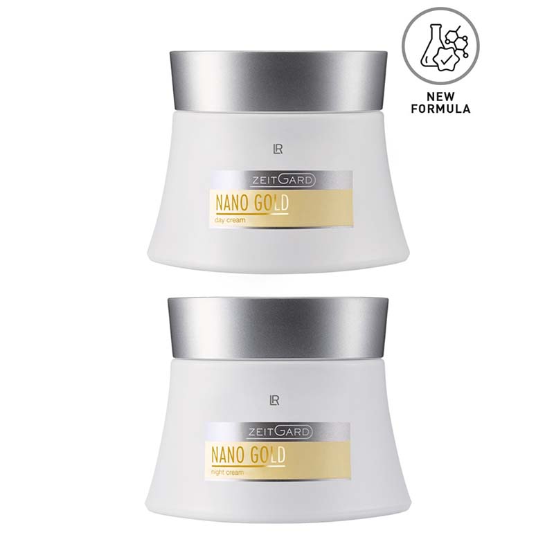 Das Nanogold Tag- und Nachtset ist die seidig luxuriöse Pflegeserie gegen eine vorzeitige Hautalterung. Ein Pflegeset für jüngere Haut ab 30. Das Set mit Seidenproteinen, Nanogold und weiteren pflegenden Inhaltsstoffen. Das Zeitgard Nanogold und Seide Tagescreme unterstützen die Haut ab 30 mit einem sinnvollen UVA-Schutz. Nachts regeneriert und pflegt die Nanogold Nachtcreme Ihre Gesichtshaut intensiv.