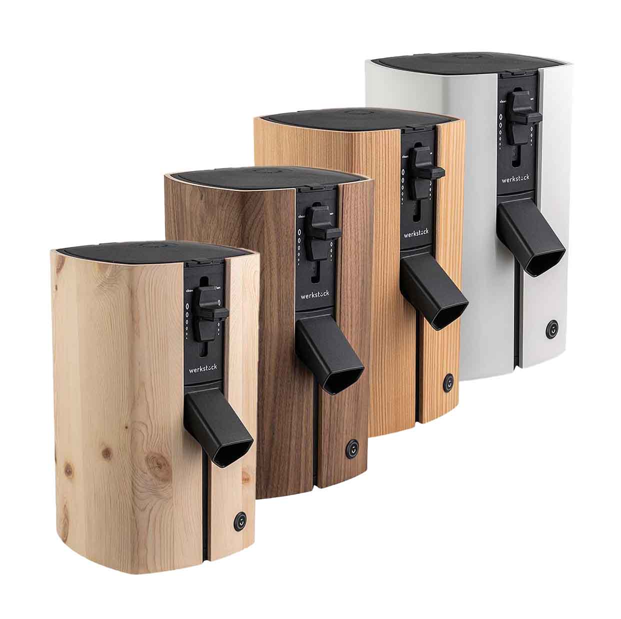 - Material Gehäuse: Biegesperrholz furniert (je nach Auswahl), produktberührende Teile aus lebensmittelechtem Kunststoff