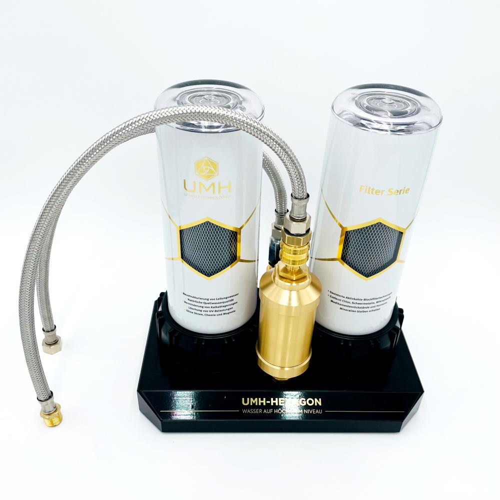 UMH Hexagon - Ein Premium Aktivkohlefilter mit zusätzlicher Wasserenergetisierung. Das UMH Hexagon ist ideal geeignet für den Einbau unter der Küchenspüle und in wenigen Minuten installiert, dank einem "Plug and Play - System".
