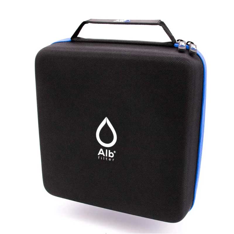 2x Alb Filter Element Gehäuse, 1x Alb Filter Active Filterkartusche, 1x Alb Filter Nano Filterkartusche, 1x Alb Filter Connect – Verbindungselement, 1x Alb Filter Camping Anschluss-Set (Mobil), 1x Alb Filter Camping Koffer