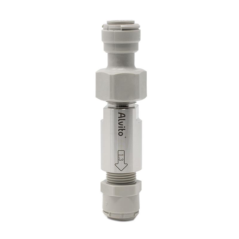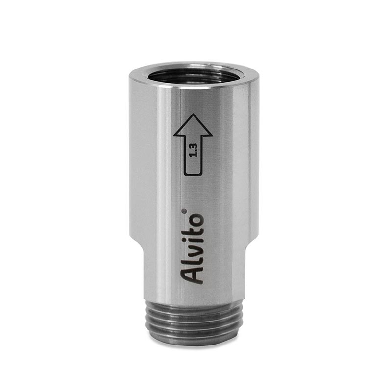 Die Wirbelkammer des Alvito Lowflow hat eine optimierte Form und sorgt für eine hocheffiziente Verwirbelung mit einer maximalen Wirksamkeit. Die Produktion und Entwicklung der Alvito Wasserwirbler erfolgt in Deutschland mit den präzisesten und modernsten Maschinen. Der verwendete Edelstahl (1.4404) wird ebenfalls in der Lebensmittelindustrie verwendet, da er eine sehr gute Korrosionsbeständigkeit aufweist. Daher ist der Wirbeler ideal für Umkehrosmosewassser geeignet. Der Alvito Lowflow Wirbler wird Inline, also unter der Spüle, zwischen Wasserhahn und Wasserleitung eingebunden. Der passende Adapter (1/4 oder 3/8 Zoll) wird Ihnen je nach bestellter Variante mitgeliefert. Die Durchflussgeschwindigkeit beträgt maximal 2,8 Liter bei 4 bar Leitungsdruck, wenn kein Filter davorgeschaltet ist.