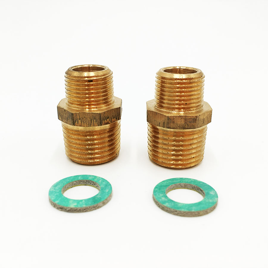 Set besteht aus 2 x Reduziernippel, 2 x Flachdichtung 1/2 Zoll, 1 x Flexschlauch DN10 / 3/8 Zoll in 50cm Länge