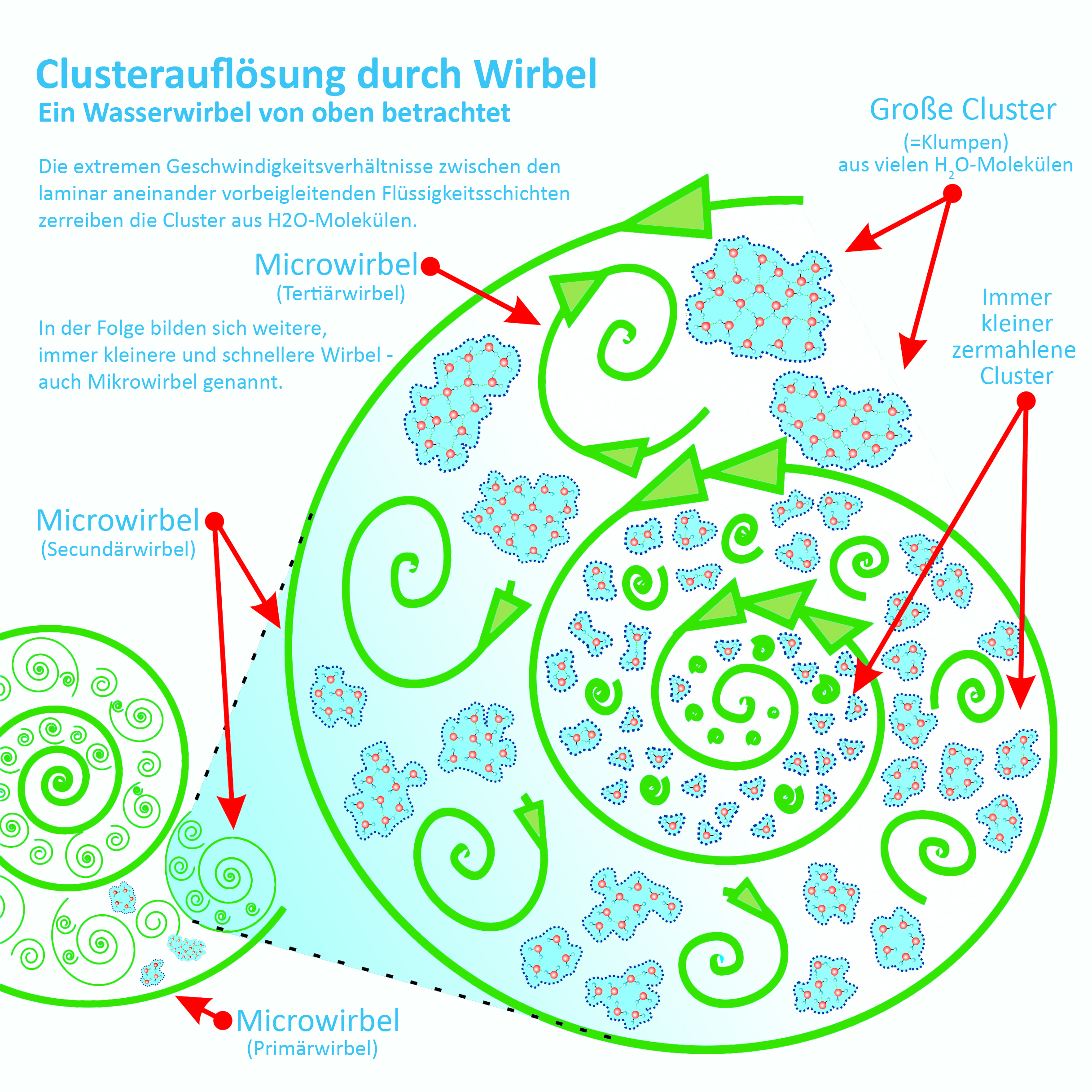 - durch die sehr hohe Wasserverwirbelung werden die Wassermoleküle geordnet