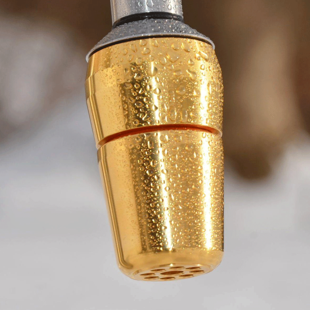 Der Aquadea ToneOne Lichtkristall Titan-Gold ist ein qualitativ hochwertiger Wasserverwirbler nach dem “Schauberger Prinzip” zum Anschluss an den Wasserhahn oder an bestehende Filtersysteme über ein M22 Gewinde. Verwandeln Sie ihr Leitungswasser in frisches Quellwasser. Mit der Natur als Vorbild entsteht eine perfekte Verbindung aus Wasserwirbeln, Mineralien und Edelmetallen. Zusätzlich entsteht ein erhöhter Sauerstoffeintrag durch die "Implosionstechnologie" nach Viktor Schauberger. (Bild: Verwirbler ohne Bündeldüse)