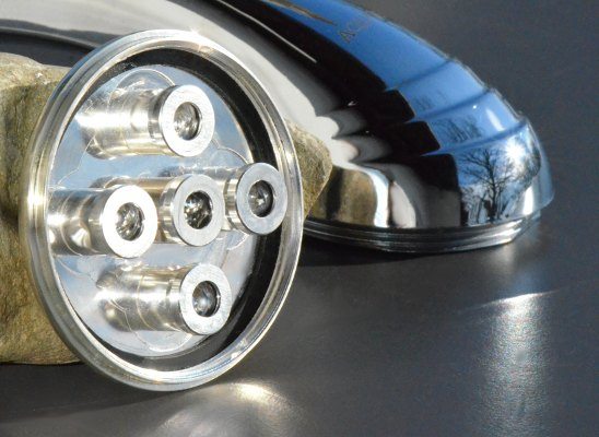 - Zentrale Wirbelkammer: reine Bronze mit eingeschliffenem BK/RQ, Deckel aus Bronze versilbert