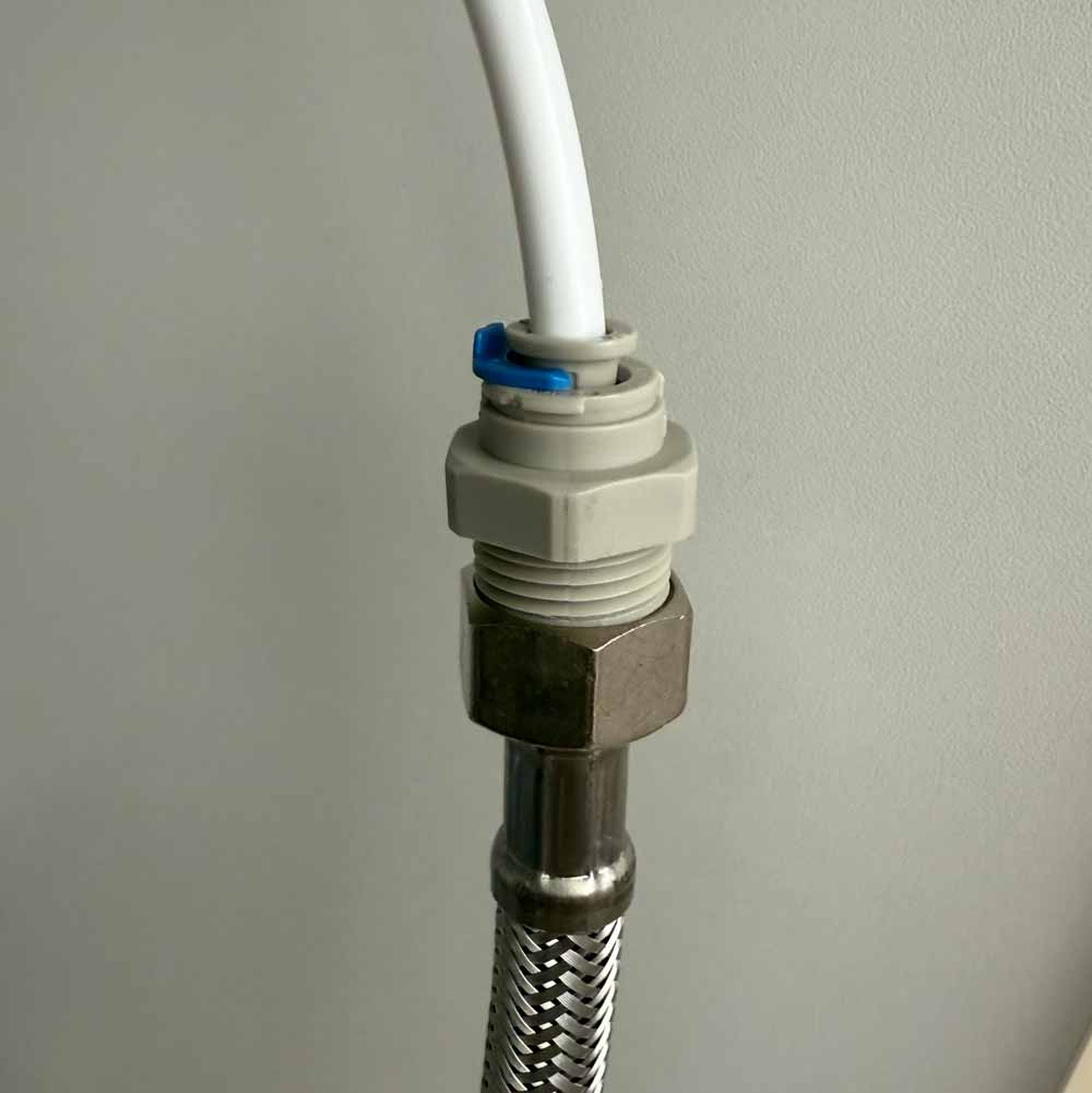 Perfekt um 3/8 Zoll Flexschläuche mit dünnem 1/4 Zoll Umkehrosmoseschlauch zu verbinden.
