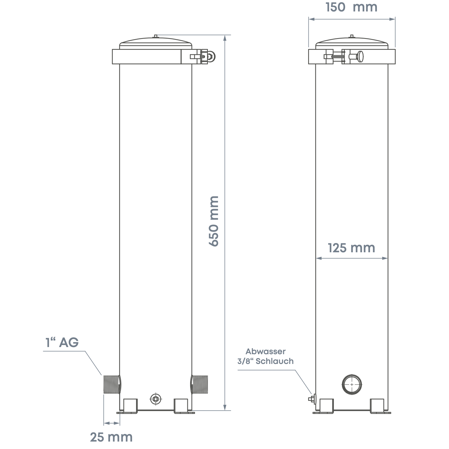 | Lieferumfang: | EVODROP Edelstahlleergehäuse, optional: Filterpatrone