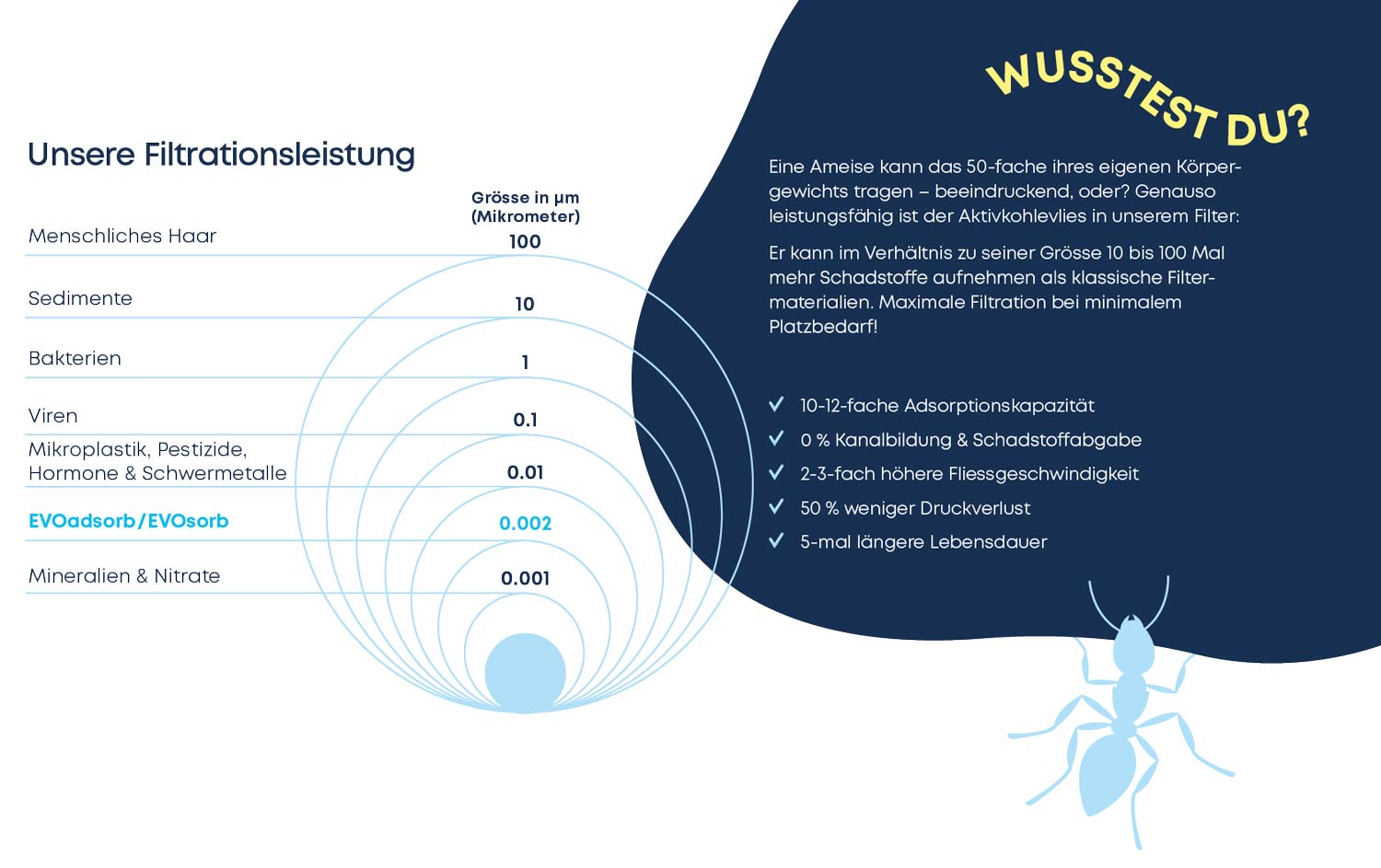 - Filtrationsleistung: Schwermetalle, Bakterien & Viren
