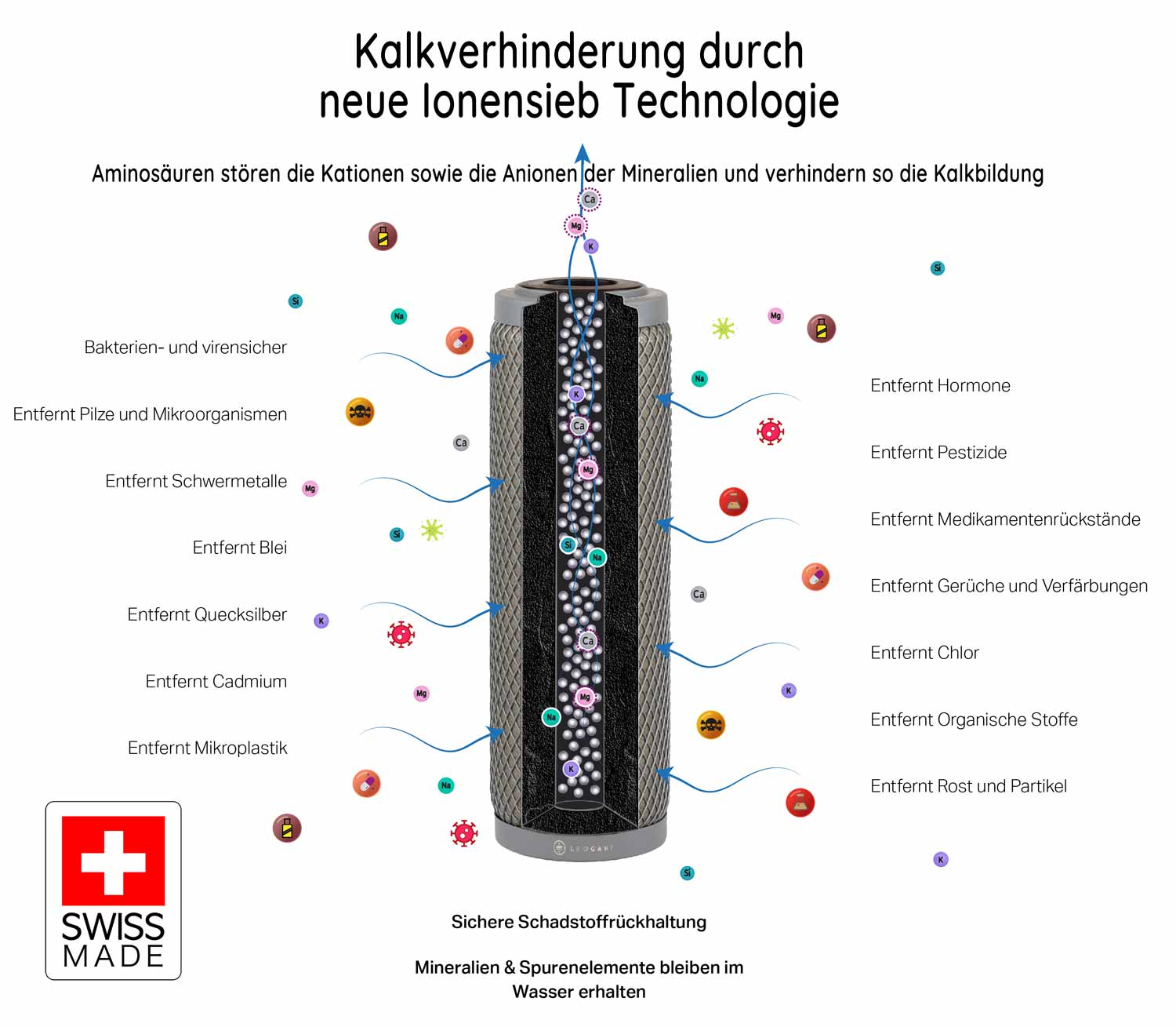Anti-Kalkmodul im Kern der Patrone ohne Chemie oder Salz: