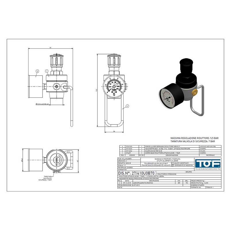Druckregler des Markenhersteller TOF (für 425g Flaschen)