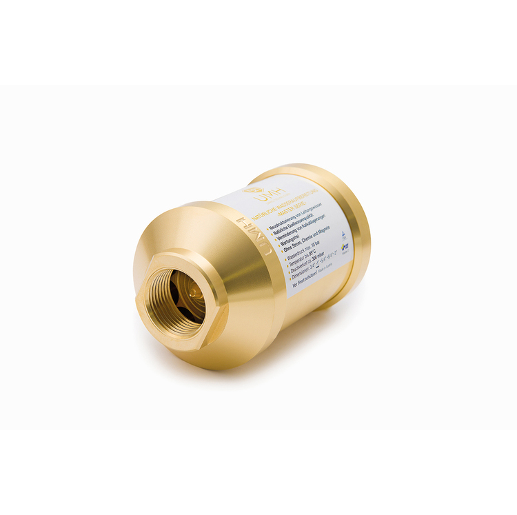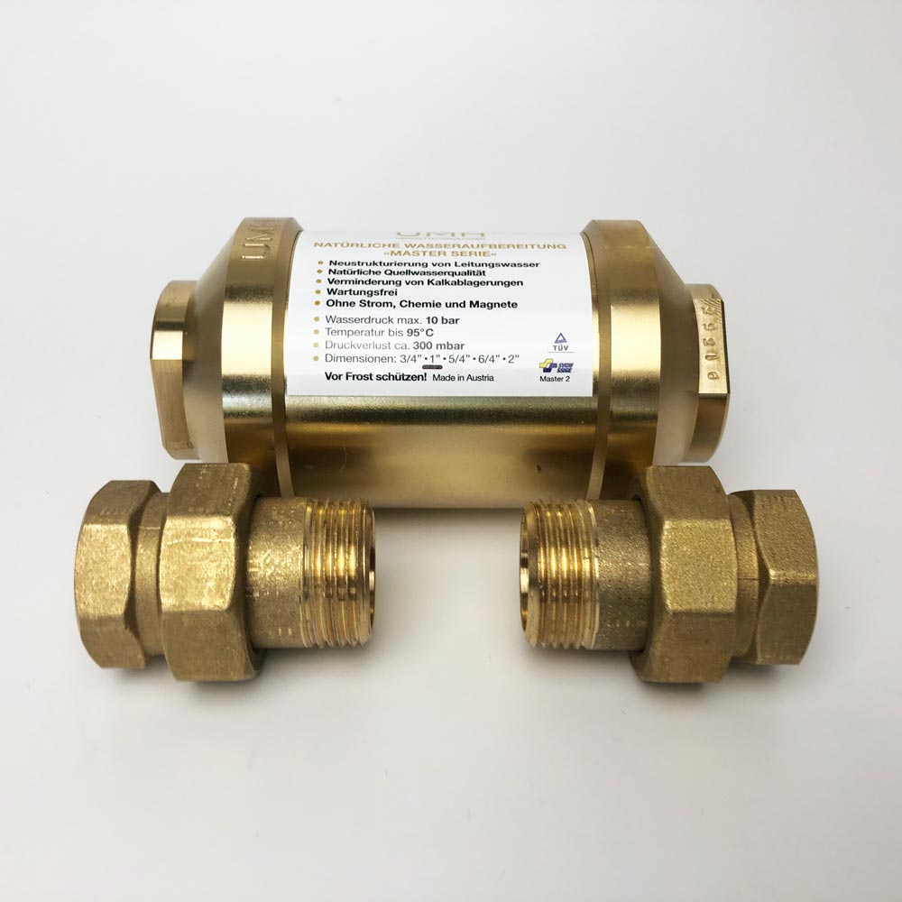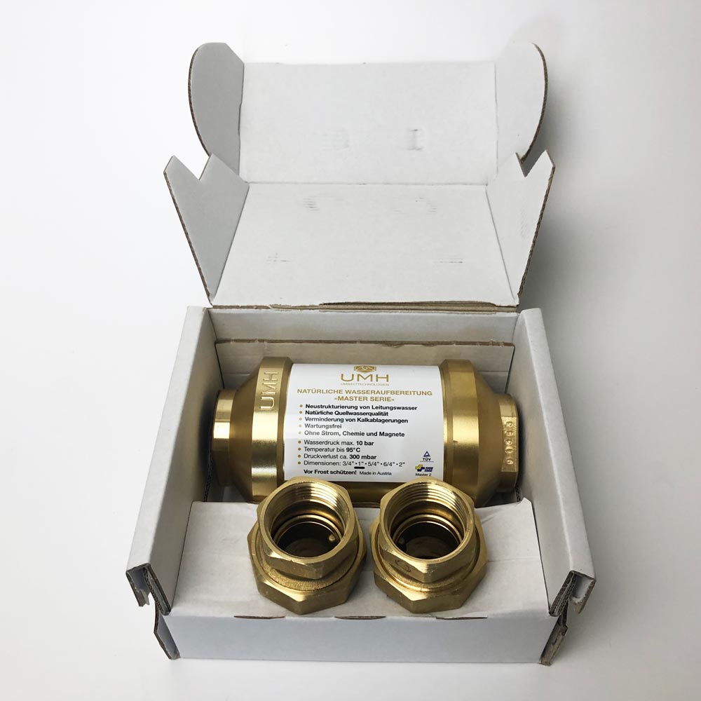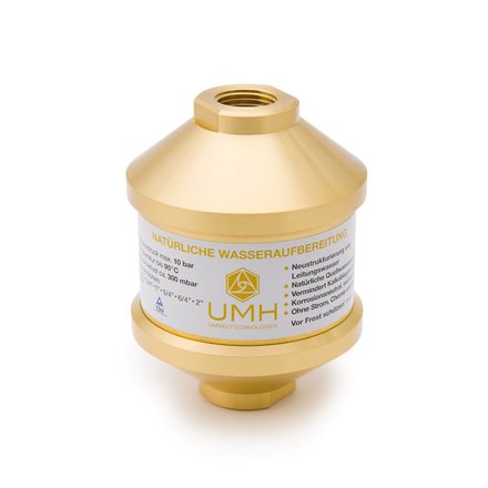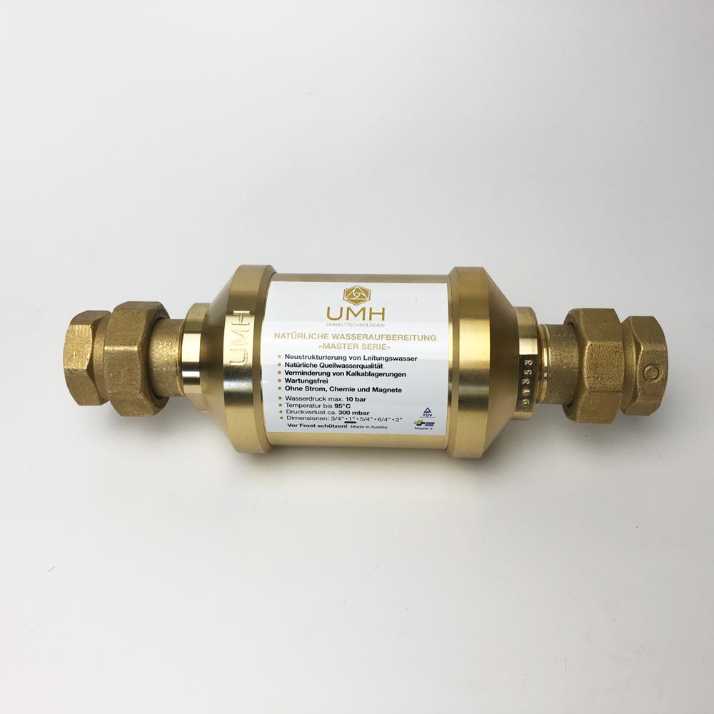 Versorgen Sie Ihre Wohnung oder Ihr gesamtes Haus mit hochwertig energetisiertem Wasser. Das UMH Master wurde speziell für die Installation in den zentralen Hauptwasseranschluss entwickelt. Das UMH Master besteht aus Messing und wurde mit einer speziellen Edelsteinkomposition bestückt.  Im Inneren sorgen zusätzlich handgefertige Glasphiolen und ein hyperbolischer Strömungszyklus, für ein hochstabiles Energiefeld. Genießen Sie alle Vorteile natürlichem Wassers in Quellwasserqualität aus jeder Leitung. Ab dem 5/4 Zoll Master Gerät, ist eine spezielle UV-Behandlung integriert. Diese ist besonders dann sinnvoll und wichtig, wenn Ihr Wasser zuvor eine UV-Sterilisation (Desinfektion des Wassers) durchlaufen ist. Die schädliche Wirkung der UV-Bestrahlung auf das Frequenzspektrum des Quellwassers kann mit dieser UV-Behandlung regeneriert werden.