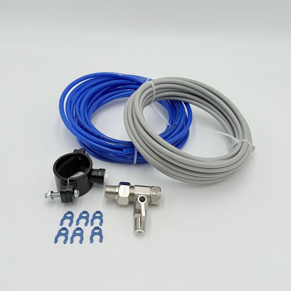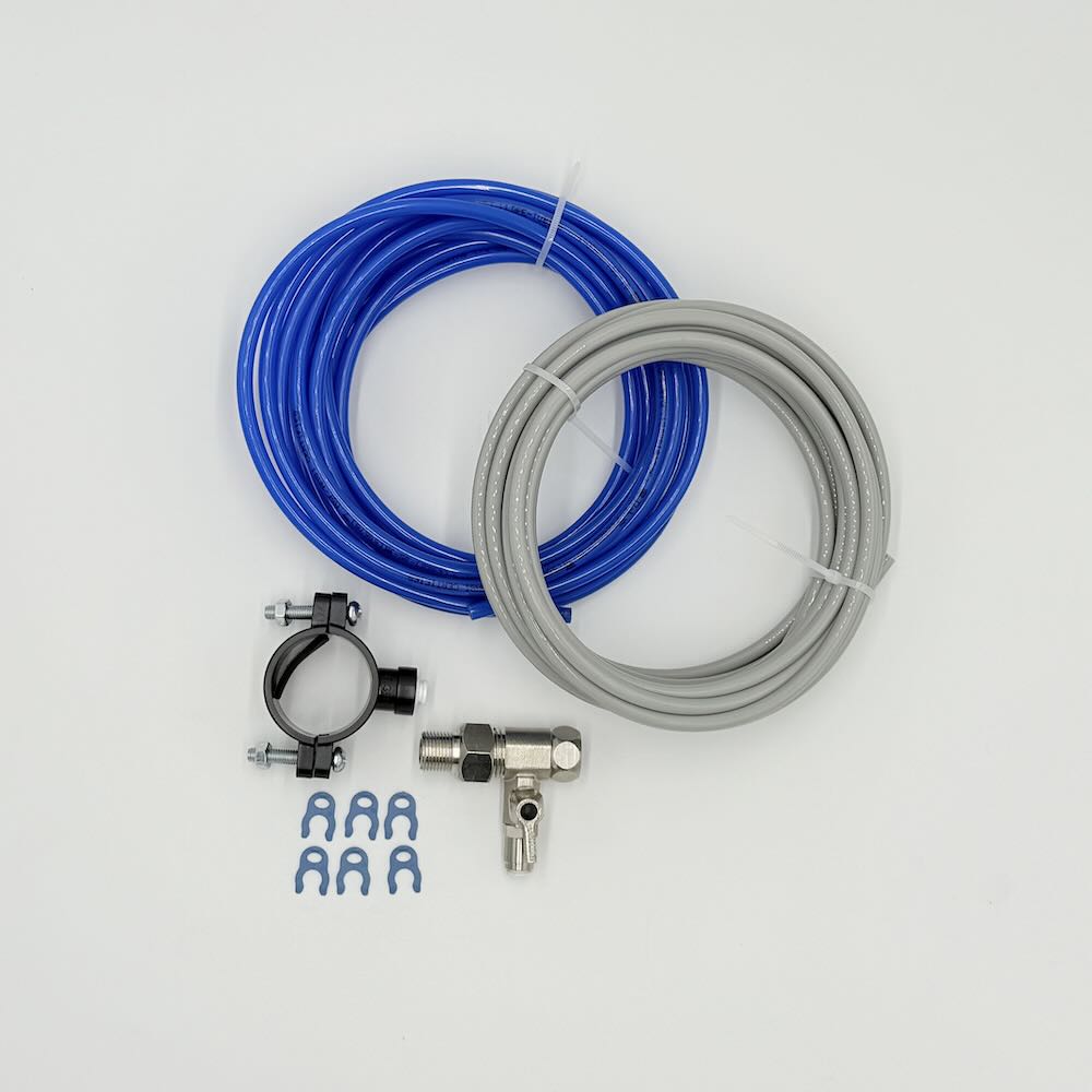 Auftischsystem mit Tank, Bedienungsanleitung, inkl. Festanschlussmaterial: ca. 2 x 3 Meter 1/4 Zoll Schlauch, T-Stück Adapter Eckventil, Abwasserschelle, Sicherungsclips