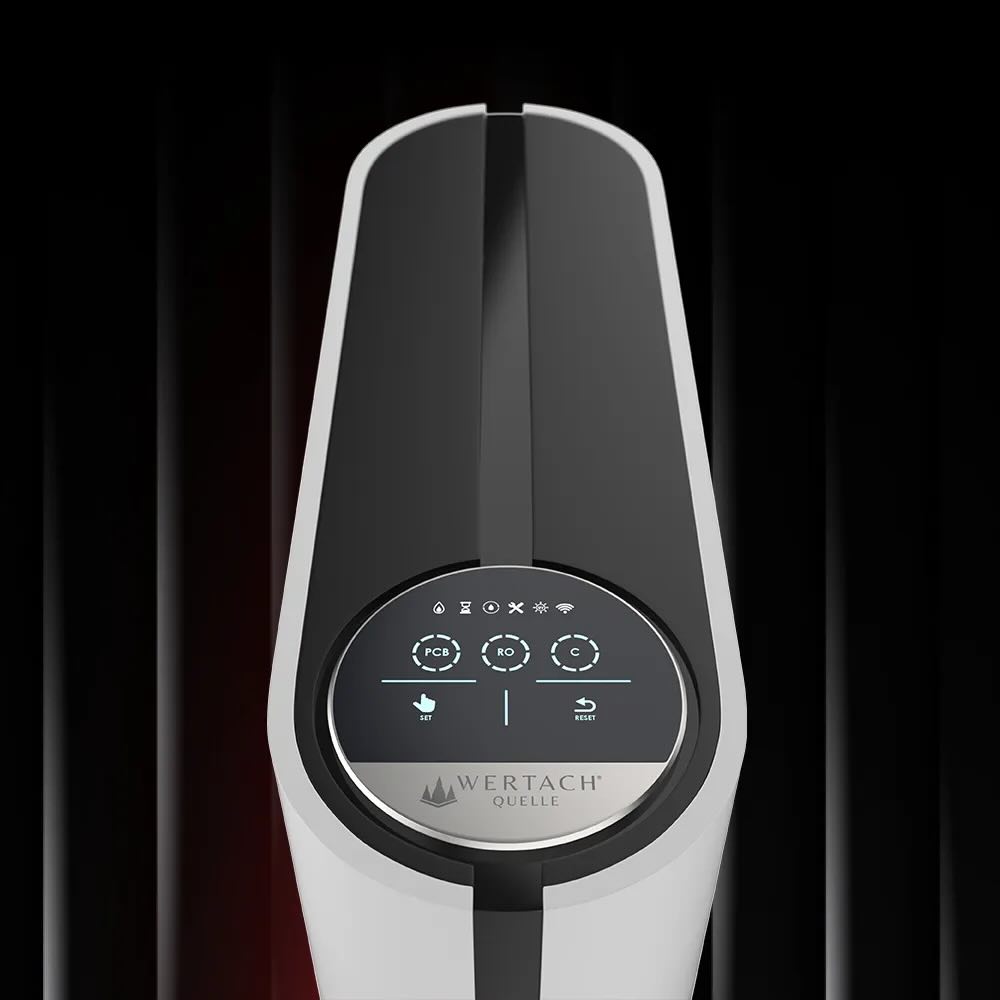 Geschmacklich überzeugt die Wertach Quelle Pantera durch ihre Remineralisierung nach der RO-Phase. Statt „flachem“ Wasser liefert sie ein ausgewogenes Mineralprofil mit Calcium, Magnesium, Natrium, Kalium und Spuren von Strontium. Das Ergebnis ist ein rundes, weiches Mundgefühl und ein angenehm leicht basischer Charakter (typ.pH7,5–8,5)(typ.pH7,5–8,5). Die TDS-Anzeige misst bewusst direkt hinter der Membran: Niedrige Werte dort zeigen die Effektivität der RO-Stufe, während am Auslauf höhere Werte die gewünschte Remineralisierung widerspiegeln. So lässt sich die Wasserqualität verständlich und transparent nachverfolgen.