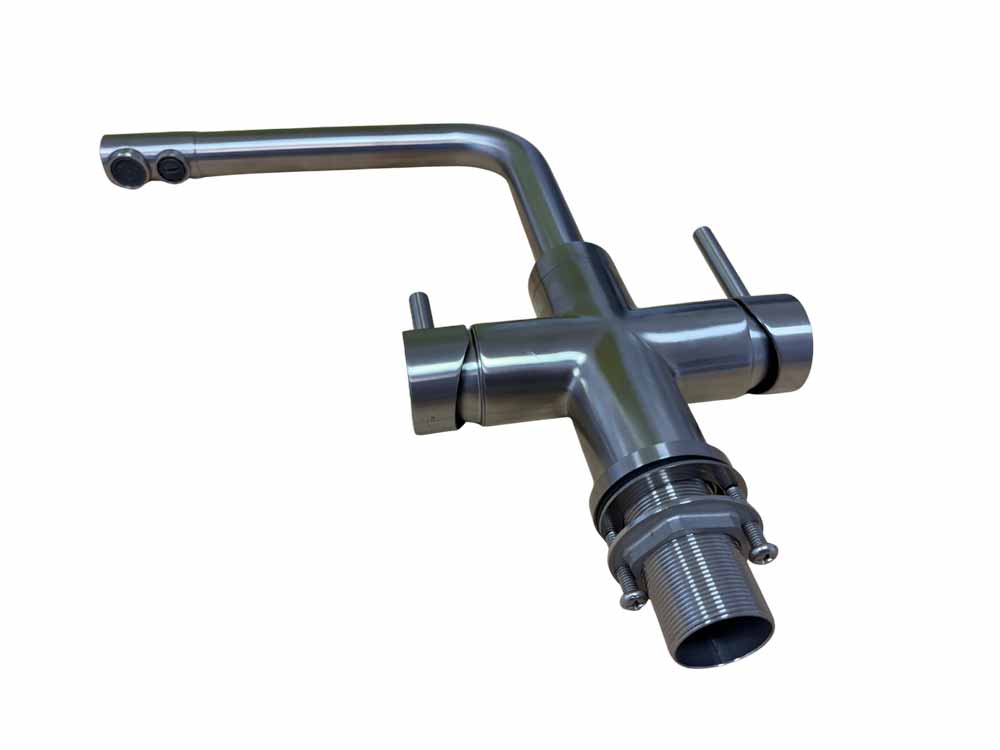Der Neo 5-Wege-Wasserhahn vereint höchste hygienische Ansprüche mit innovativer Technik und zeitlosem Design. Vollständig aus massivem Edelstahl gefertigt, bietet diese Premium-Küchenarmatur die ideale Lösung für moderne Küchen mit Osmoseanlagen, Aktivkohlefiltern oder Kombi-Kühl- und Sprudelwassergeräten.