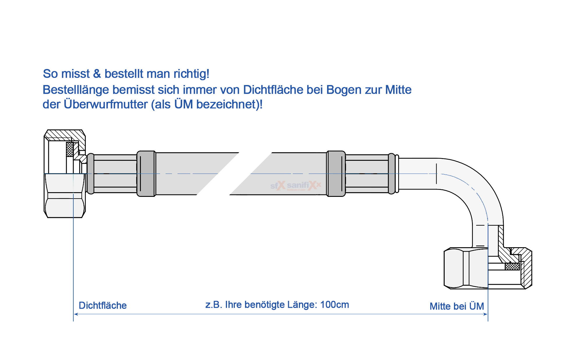 - Sonderanfertigung: ab 20 cm auch als individueller Verlängerungsschlauch möglich