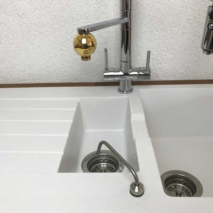 Durch Verwendung dieses Auslaufs muss keine permanente Verbindung zwischen Abfluss und Osmoseanlage geschaffen werden. Üblicherweise wird bei Osmoseanlagen das Spülwasser immer direkt über eine feste Schlauchverbindung in das Abflussrohr des Spülbeckens geleitet. Es wird zwar das Rückverkeimungsrisiko durch sog. Rückschlagventile reduziert, allerdings ist ein freier Auslauf Kontaktfrei, DIN EN 1717 konform und sehr hygienisch.