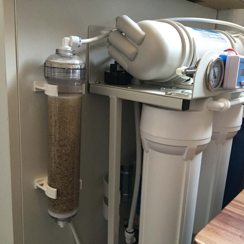 Die Kartusche wird einfach als zusätzliche & letzte Stufe, nach der Membran Ihrer vorhandenen Osmoseanlage oder nach der Filtereinheit Ihrer vorhandenen sonstigen Anlage, eingefügt. Die Kartusche sollte als letzte Stufe vor Ihrem Wasserhahn bzw. vor einem Verwirbler eingesetzt werden.